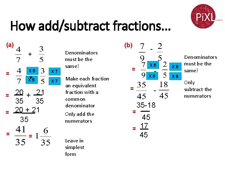 To add the fractions with unlike denominators, rename the fractions with a common denominator. Subtract the numerators and keep the denominator the same. Whole number and a fraction combined, such as 1 3 4. A mixed fraction is a. Manipulate the fractions so that they both have the.